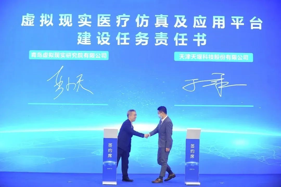 国家虚拟现实创新中心(青岛)是虚拟现实领域唯一的国家级创新中心,由南昌虚拟现实研究院牵头并联合青岛虚拟现实研究院共同组建。天津天堰科技股份有限公司作为青岛虚拟现实研究院的股东单位,依托公司在VR医疗方面的创新技术实力和科研人员实力,参与国家创新中心建设工作。会上,天堰科技与青岛虚拟现实研究院签订了《虚拟现实医疗仿真及应用平台》建设任务责任书,以期深度探索医学模拟教学与虚拟现实的融合发展,推动未来医学教学模式巨大变革,打造以虚拟现实为基础,实践为目的的虚拟医疗体系。同时,天堰将与中心合作单位协同创新,共同推动国家创新中心的生态化可持续发展,实现虚拟现实在中国重点产业的创新应用;引领虚拟现实产业升级改革,持续推动产业的高效和高质量进步。